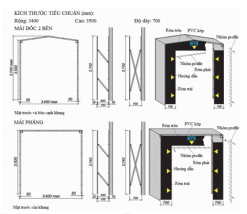 Vật liệu chính làm nên bộ trùm túi khí là vải Poly Vynil, loại vải tổng hợp có độ bền cơ học cao, chịu nhiệt tốt. Có kích thước thông dụng là 3.600mmW x 3.600mmH.
